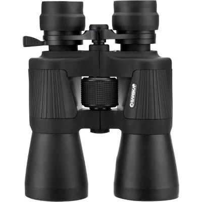 The 10-30×50 Reverse Porro Gladiator Zoom Binoculars combine extended magnification in a more compact design for greater mobility. The Reverse Porro Prism design creates a more compact over-all size compared to traditional porro prism binoculars, but maintaining full-size features such as the large 50mm objective lenses. The zoom lever allows you to seamlessly transition through the magnification range from 10x for quickly scanning large open areas, all the way to 30x to get a closer more detailed look at your object of interest. The oversized Center Focus Knob is ergonomically positioned for fast and easy focusing while maintaining a natural and comfortable hold. Fully Coated Lenses on all air-to-glass surfaces increase light transmission for a bright, crisp image. The Rubber Armor Exterior provides an added layer of protection, with a textured surface for a non-slip grip. Fold-down Rubber Eyecups are incorporated into each eyepiece providing a comfortable viewing experience with or without eyeglasses. Included with these binoculars are lens covers, a neck strap, and a nylon case for convenient and secure transport. Backed by Barska’s Limited Lifetime Warranty