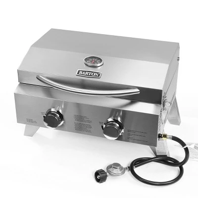 Barton tabletop grill is a powerful combination of raw grilling performance and great design, and owns good quality certificated by . And it offers 20,000 total BTUs and reaches high temperatures quickly with each burner independently adjustable. You can really enjoy the outdoor activity and grilling with this product!