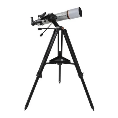 Unleash the power of your smartphone to take you on a guided tour of the night sky—no telescope experience required. Patent-pending StarSense sky recognition technology uses your smartphone to analyze star patterns overhead and calculate its position in real time. StarSense Explorer app automatically generates a list of objects currently visible. View planets, brighter nebulae and galaxies, star clusters, and double stars from the city or take your telescope to darker skies to view faint, deep sky objects. StarSense Explorer works with most modern smartphones, including iPhone 6 and up and most devices running Android 7.1.2 or later manufactured since 2016. Manual Telescope Ideal for Beginners Celestron has reinvented the manual telescope with StarSense Explorer that uses your smartphone to analyze the night sky and calculate its position in real time. StarSense Explorer is ideal for beginners thanks to the app’s user-friendly interface and detailed tutorials. It’s like having your own personal tour guide of the night sky. Manual altazimuth mount with smooth, dual-axis slow-motion controls makes it easy to follow the on-screen arrows to your desired target. When the bullseye turns green, it’s ready to view in the telescope’s eyepiece. High-Quality Altazimuth Mount with Slow Motion Control An ultra-stable altazimuth mount provides a sturdy foundation for StarSense Explorer DX. Slip clutches and geared slow motion controls in both axes help you move the telescope smoothly and zero in your target. As celestial objects appear to drift across the night sky, you’ll be able to follow them with just a turn of the knobs. It’s all anchored by an adjustable, full-height tripod. Dazzling Views with High Quality Optics With a large 102mm (4 inches) objective lens, this telescope has enough light gathering ability to bring out impressive detail in celestial objects. You can expect sharp, bright views of Jupiter’s four Galilean moons, its cloud bands and Great Red Spot, the rings of Saturn, the trapezium in the Orion Nebula, and beautiful Pleaides Open Star Cluster. Celestron’s XLT optical coatings improve light transmission, enhancing the views even more. Also included is are 25mm and 10mm eyepieces, StarSense smartphone dock, erect image diagonal, a red dot finderscope (in case you want to use the telescope without your phone), and a sturdy, full-height tripod. StarSense Sky Recognition Technology StarSense Explorer uses patent-pending technology and your smartphone to determine exactly where the telescope is pointed in the night sky. Utilizing a Lost in Space Algorithm (LISA), similar to the ones used by in-orbit satellites to correctly reorient themselves, helps the app match star patterns it detects overhead to its internal database. Dock, Launch, Explore Leave complicated star charts, imprecise planetarium apps, and computerized mounts behind. With StarSense Explorer, locating objects has never been easier, faster, or more accurate. Within minutes of setting up the telescope, you’ll be navigating the sky with confidence. Simply place your phone in the unique StarSense dock and launch the StarSense Explorer app. After aligning your phone to the telescope’s optics (a quick, 2-minute procedure), StarSense Explorer generates a list of celestial objects currently visible. Perfect for the City or Dark Sky Sites Even if you live in a light polluted city location, StarSense Explorer is advanced enough to be able to pick out Jupiter, Saturn, Venus, the Orion Nebula, double stars, and a few more of the most famous celestial objects. But if you can take the telescope to an even slightly darker location, more objects will become visible. With this 4-inch refractor and relatively dark skies, the Andromeda Galaxy, Hercules Open Star Cluster, and so many more are easily within your reach.