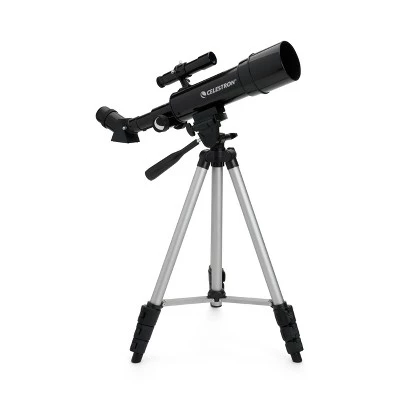 The Travel Scope 50 is a refractor telescope perfect for terrestrial and celestial viewing on the go. The Travel Scope can view the planets, moon, star clusters and brighter deep sky objects like the Orion Nebula and Andromeda Galaxy at night and with the erect image star diagonal makes the optical tube ideal for using as a spotting scope during the day.
