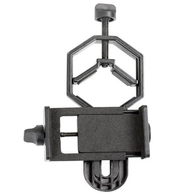 Capture images and video right on your smartphone with this handy smartphone adapter. with its light, rigid frame, this accessory allows you to connect any smartphone to the Travel Scope eyepiece, or any eyepiece with an outside diameter of 45 mm or smaller. The additional magnification provided by the eyepiece allows your phone to capture stunning images of wildlife, distant objects, and even the Moon at night! This smartphone adapter installs in seconds by simply clamping over the top of the eyepiece. Tightening knobs securely lock your phone in place. Note that some large and/or excessively bulky phone cases (including folio style cases) may need to be removed for the phone to fit in the adapter.