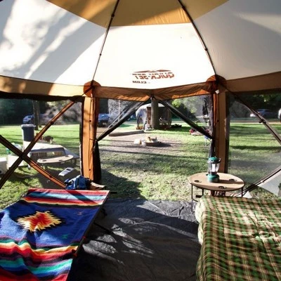 - 6-sided canopy with removable floor provides shelter and protection from the elements; Accommodates up to 8 people
