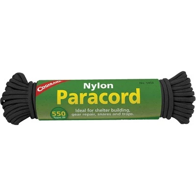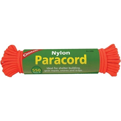 The Coghlan’s Nylon Paracord is great for survival bracelets, shelter building, gear repair, snares, traps and more. This cord is a must-have product for campers, hunters, survivalists and backpackers. This commercial grade, 550 cord features 7 individual inner core strands. Adding strength, these strands can also be used separately for any number of things such as sewing thread or as a fishing line. Will not rot or mildew. Overall length: 50′. Safe working load: 100 lbs.