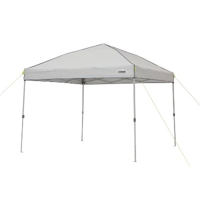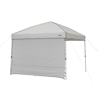 Get instant shade with the CORE® 10′ x 10′ Instant Canopy with Sun Wall. This large outdoor canopy provides 50+ UV Protection and 100 square-feet of cooling shade anywhere. Over-sized pinch-free buttons make setup carefree. Simply extend the one-piece steel frame, attach the canopy top, and extend the legs. Adjust the shade as needed throughout the day with the three leg height adjustments and attach the sun wall where needed to keep the glare of the sun away or cut down on wind. Take the CORE® Instant Canopy anywhere you go with the included ground stakes, tie downs, and wheeled carrying bag. The 10′ x 10′ Instant Canopy with Sun Wall is great for camping, tailgating, fairs, music festivals and much more.