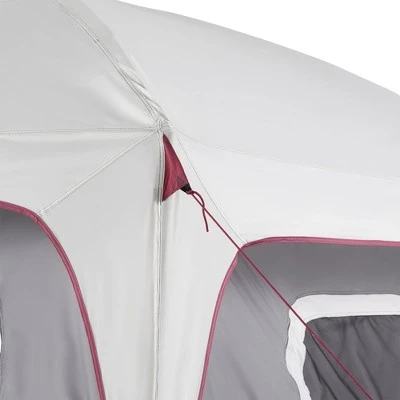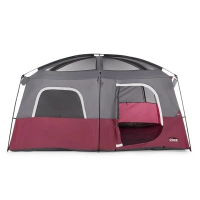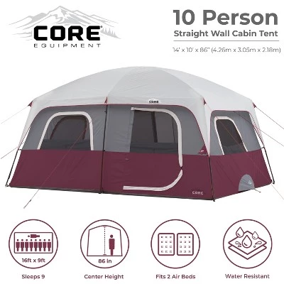 The CORE 10-Person Straight Wall Cabin Tent 14 x 10-foot features a 7-foot center ceiling height paired with straight wall design to create a spacious interior. The included divider creates 2 separate rooms for sleeping and living spaces. The 6 included windows and doors feature zippered privacy panels so you can divide the camping tent into rooms, and the fully-taped rain fly is removable in warmer weather to expose the panoramic mesh ceiling. Vents and a mesh system help to banish hot air while pulling in cool air.The exterior is made from durable polyester, that’s sure to last for years to come. A gear loft with lantern hook and organizer storage pockets manage your smaller gear and keep it up off the tent floor.