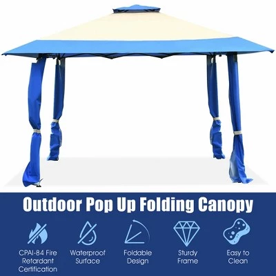Our canopy tent is a good choice for you to gather with your family or friends.Made of premium oxford fabric and powder-coated steel, the canopy tent is durable and sturdy on sunny day. Besides, 3 adjustable heights enable you to choose your favorite height. Double ventilated roof design allows for proper airflow. Apart from that, the folding tent is easy to set up. Wheeled storage bag makes it easy to carry and store. It is ideal for parties, picnics and trade exhibition.