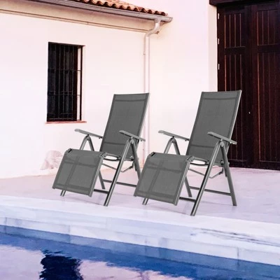 This outdoor folding lounge chair will be a perfect choice for you to relax indoors or outdoors. Using high-grade fabric, the reclining chair is resistant to heavy sunlight and easy to dry up, which is suitable for outdoor use. And the chair frame is made of premium aluminum, ensuring the high stability and strong weight capacity. What’s more, the chair is quite breathable so you can enjoy your leisure outdoor time even in the hot summer. Through lifting up the armrests of both sides, you can easily adjust the backrest and footrest position to meet your daily needs. And its light weight and foldable design makes storage and carrying quite convenient. It’s time to get a fabulous reclining chair for extraordinary relaxation. Specification: Color: Grey. Material: Aluminum + Fabric. Overall Dimension: 29” x 23.5” x 43” (L x W x H). Folding Dimension: 36” x 23.5” (L x W). Seat Dimension: 16.5” x 23.5” (L x W). Seat Height: 20”. Armrest Height: 25”. Backrest Length: 28”. Footrest Length: 14”. Net Weight: 24 lbs. Weight Capacity: 330 lbs. Package Includes:. 2 x Patio Reclining Chair. 1 x Instruction.