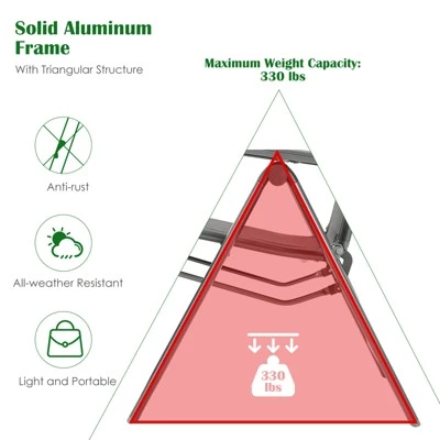 - Sturdy Frame & Durable Fabric: The sturdy aluminum frame with triangle structure enables the reclining chair to resist well against rust and deformation. And the max weight capacity of the chair is up to 330lbs. Moreover, the selected seat fabric is not only weather-resistant, but also breathable and skin-friendly.