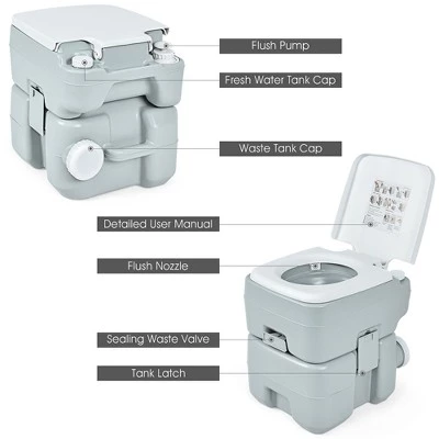 - Separated & Large Capacity Tanks: Equipped with a 2.7-gallon fresh water tank and a 5.3-gallon waste tank, this toilet features the larger capacity than most camping toilets, leaving you free from the trouble of frequently refilling the fresh water or dumping the waste.