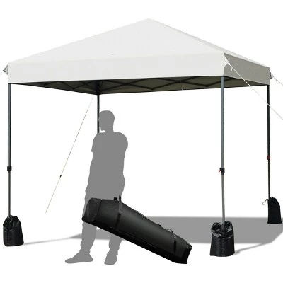 Our folding tent which can be conveniently stored in a portable bag to carry and perfect for many outdoor activities. Constructed of powder-coated solid steel, the frame of the tent is rust-resistant and can provide long time service. And the height of canopy can be adjusted in three positions to meet your different needs. The wind ropes, stakes and sandbags which come with tent can also add stability of tent. Whether the weather is rain or shine, this outdoor shelter is sure to make your outdoor gathering pleasant.