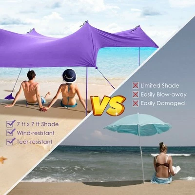 - Apply to All Outdoor Activities: This beach sunshade is the best choice for beachgoers, surfers, soccer moms, and camping enthusiasts. By using this outdoor sun shelter, you and your loved ones can be out of harmful sun rays during camp fishing or mountain climbing breaks and still enjoy outdoor fun.