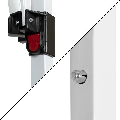 Don’t let the blistering sun or a rainy day spoil your outdoor activities and events. This white all-weather 10′ x 10′ pop up canopy tent will keep you out of the elements so you can enjoy your time with family and friends. The polyester top is weather resistant to keep you dry in light rain, has reinforced corners to prevent ripping or tearing and is UV coated to resist the sun’s rays to prevent fading. Simply unfold the fabric top, attach to the frame with the hook and loop fasteners, extend the bottom legs and pull open for instant protection. Get many years of enjoyment from this canopy tent. The white steel powder coated frame is rust and corrosion resistant and locks in place with a “pinch free” locking mechanism. The height adjustable frame takes you from the backyard to the beach and everywhere in between. This canopy pop up tent folds up when not in use and has its own bag for easy storage. This quick shade canopy includes the frame, canopy top and stabilizing ground stakes. Assembly takes less than 10 minutes and does not require tools. Take this portable shade canopy on camping trips, tailgating, the kids soccer games or for get togethers on your patio or in the yard. This party canopy tent will look great season after season. Additional Features: Height Adjustable Powder Coated Frame is weather and rust resistant, Assembles in 10 Minutes or Less; Includes Ground Stakes to anchor the structure; String Size (8): 118″, Seating Capacity with 8′ Folding Table: 10; Standing Capacity: up to 20, All Occasion Pop Up Party Canopy Tent ideal for family reunions, neighborhood block parties, tailgating, camping or as shade on your deck or patio