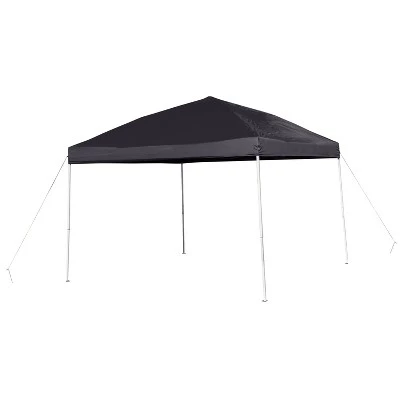 Portable shelters are an excellent way to provide shade during outdoor events and this black all-weather 10′ x 10′ pop up canopy tent will help keep you out of the elements so you can enjoy your time with family and friends. The weather resistant polyester top has reinforced corners to prevent ripping or tearing and is UV coated to resist fading from the sun’s rays. Simply unfold the fabric top, attach to the upper frame with the hook and loop fasteners, extend the bottom legs and pull open for instant protection. Strength and durability abound in this instant canopy. The white powder coated steel frame is rust and corrosion resistant and locks in place with a “pinch free” locking mechanism. The height adjustable frame takes you from the backyard to the beach and everywhere in between. This canopy pop up tent folds up when not in use and has its own bag for easy storage. This quick shade canopy includes the frame, canopy top and stabilizing ground stakes. Assembly takes less than 10 minutes and does not require tools. Take this portable shade canopy on camping trips, tailgating, the kids soccer games or for get togethers on your patio or in the yard. This party canopy tent will look great season after season. Additional Features: Height Adjustable Powder Coated Frame is weather and rust resistant, Assembles in 10 Minutes or Less; Includes Ground Stakes to anchor the structure; String Size (8): 118″, Seating Capacity with 8′ Folding Table: 10; Standing Capacity: up to 20, All Occasion Pop Up Party Canopy Tent ideal for family reunions, neighborhood block parties, tailgating, camping or as shade on your deck or patio