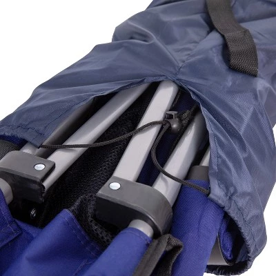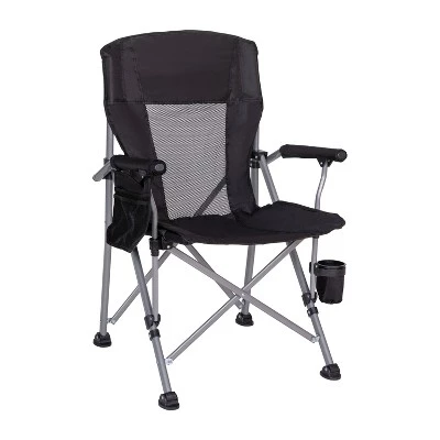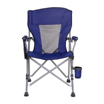 Saturday morning soccer, campground getaways, or just hanging out in the back yard will be much more comfortable when you sit in this multipurpose indoor/outdoor camping chair. The middle of the durable water and weather resistant canvas fabric back and seat is mesh which allows airflow to keep you cool on hot days. Featuring a storage pocket and cupholder, your hands will be free to cheer for the kids or just relax on the padded arms. For increased longevity, store indoors away from the elements. Enjoy the campfire; tailgating before the ballgame; or a beach outing with this folding camp chair. The rust-resistant powder coated steel tube frame with galvanized rivets holds up to 300 Lbs. static weight capacity to provide a safe and sturdy seating experience. With no assembly required and a convenient extra wide, easy stow carrying bag, this foldable chair is a great choice for fishing or unexpected get-togethers. The portable, folding design lets you store these sports chairs in your closet, basement, or car so extra seating is always on hand for outdoor concerts and hiking trips. Wipe your new chair clean with a damp cloth to keep it looking great. Additional Features: Easily Cleaned with a Damp Cloth, No Assembly Required for instant enjoyment, Foldable seating transports easily for sporting events, family reunions, & backyard gatherings