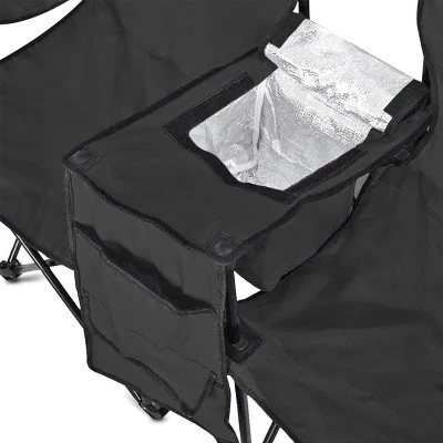 Cool off and relax anywhere. With the GoTeam Double Folding Chair Set, you can kick back in cool comfort wherever you decide to go.This set consists of two folding camping chairs that are connected with a single armrest. The easily portable, folding design makes this lounge accessory great for kids’ soccer games, the beach, camping with the family, tailgating, and more. Cool off with your favorite ice-cold beverage that you can store in the cooler bag that is built right into the central armrest.This lightweight set of travel chairs also comes with a large umbrella that provides shade for both seats. When you don’t need it, you can just detach this umbrella, close it, and then set it to the side. Once the last whistle is blown or the campfire has been put out, you can quickly and easily pack this set of chairs away in the convenient carrying bag so you’re ready for the next adventure.Take relaxation and comfort with you this summer. Stay cool and comfortable with the GoTeam Double Folding Chair Set.