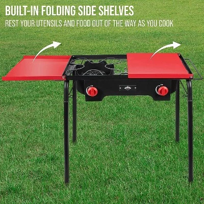 Cooking things upTake your campfire cooking to new heights with this convenient stovetop appliance from Hike Crew. Designed to work without any electricity, this handy unit allows you to connect your own propane gas cylinder or tank and get the convenience of stovetop sautéing, frying, and boiling, no matter where your travels take you. Each individual burner has its own burner control knob, giving you individualized control over the flame. Eat every delicious bite of your meal knowing it was made on a quality, high-performance stove. And when mealtime is over, store your stove in its convenient carrying bag. A standard-issue gas regulator and hose are included with your purchase, so all you need to do is connect your own propane! Keep serving up delicious meals, even when you’re off the grid!Cooking while camping – Take this highly efficient stove in nature so you can cook delicious food in the outdoorsConvenient design – Integrated shelves provide extra space for your food and cookwareVast cooking power – Delivers up to 150,000 BTU cooking power per hourPerfect travel partner – Includes a carrying bag so you can pack and set up your stove anytime, anywhereEasily turn up the heat – Comes with adjustable burner controls for easy monitoring