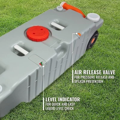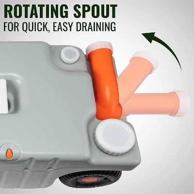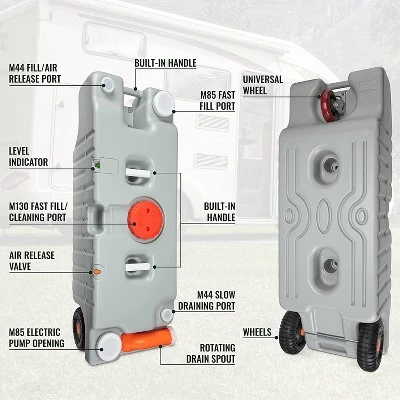 Easy, Reliable EmptyingThe most nerve-wracking part of using your RV is now simpler than ever with the Hike Crew Portable RV Waste Water Tank.This durable waste water tank makes it easy to transport your RV’s waste water to a draining station. The rugged, never-flat wheels help you roll your water tank to the nearest draining station without unneeded strain, and the built-in level indicator makes it easy to see when you need to drain this tank. Utilize the air release valve and flexible, rotating draining spout for smooth draining.When you are using your RV, you want to focus on the adventure. Take the hassle out of RVing with the Hike Crew Portable RV Waste Water Tank.Never-flat wheels – The durable wheels are always ready to go and make drainage simple and easyLow drainage port – Completely emptying this water tank is simple with the low drainage portBuilt-in level indicator – Easily see when your tank needs to be emptied with the built-in level indicatorAir release valve – Smooth out your draining with the air release valve for complete, easy drainingRotating drainage spout – Set yourself up for success at any drainage site with the rotating drainage spout