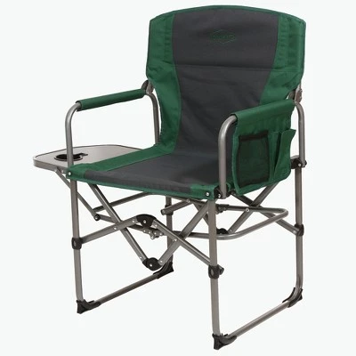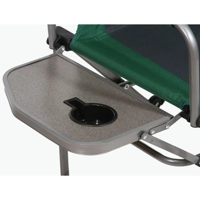 Sit comfortably wherever you are. Strong, comfortable and convenient, the Kamp-Rite Compact Director’s Chair with Side Table is a more portable version of the original Director’s Chair, great for boats, campsites, tailgating and more. The folding chair features a built-in side table with a recessed cup holder and plenty of room for food and snacks. You can take this camping chair anywhere because it sports a strong-yet-lightweight, reinforced steel frame that is easy to fold and carry. This compact folding chair folds down to almost 1-quarter the size of the chair’s dimensions when fully open. The outdoor chair back and padded seat are constructed with heavy-duty polyester fabric, while the curved armrests are angled for ergonomic comfort.This outdoor camping chair measures 20 inches long, 24 inches wide, and 35.5 inches tall when set up. The camping chair holds up to 225 pounds, making it a great piece of camp furniture for anyone.Sit back, relax, and enjoy your time in in your backyard, on your boat, or out camping or tailgating on the the Kamp-Rite Director’s Chair.