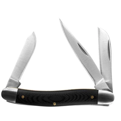 The Brandywine offers traditional style—but with a Kershaw update. The Brandywine is a classic, three-bladed, slipjoint pocketknife. It features clip point, spey, and Wharncliffe blades in 7CR17MoV stainless steel. Added vanadium in the formula increases strength, wear resistance, and toughness, giving you a blade with a long-lasting edge. For a contemporary look, the handle scales are black G10, shaped and polished to bring out the luster and weave of the material. Kershaw included brass liners and brass rivets for an additional touch of class.