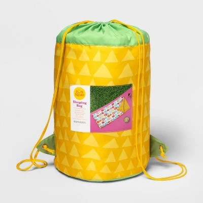 - Kids’ sleeping bag features bright multicolored pineapple print for fun style