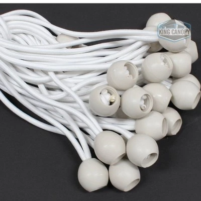 King Canopy Replacement Ball Bungees are used to secure canopy covers, side walls and tarps. Keep material secured in a fixed position while still allowing some movement through the elasticized cord, this helps lessen the strain on the grommets and will prolong the life.