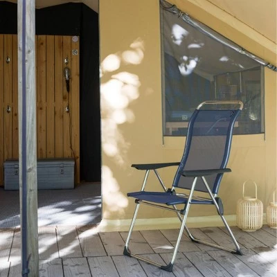 Outfit your backyard or campground fire pit with plenty of comfortable, easily portable seating thanks to the Lafuma Alu Cham Folding Camping Patio Mesh Sling Chair.4 matching folding camping chairs are included in this set, each supported by a rustproof aluminum alloy frame. Adjust the angle of the backrest to your preference of 5 positions. Resin armrests and a sling fabric provide support, as well as comfort, to the design ideal for long afternoons lounging underneath your favorite shade tree. A mesh design made from synthetic Batyline fabric promotes airflow and quick-drying. The fabric is also resistant to UV-fading and tearing, making it hardy enough to stay outdoors all season long.The outdoor patio chairs each fold up compact, making them easy to stack, carry, and store anywhere you need. At your kid’s playoffs, that outdoor concert, or just Sunday mornings on the front porch, the Lafuma Alu Cham Folding Camping Patio Mesh Sling Chair makes sure your needs are always taken care of.