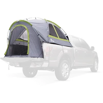 Enjoy the freedom of adventuring wherever and whenever you want with the Napier 19 Series Backroadz Full-Size Regular Bed Truck Tent.Whether it’s spring, summer, or fall, this sturdy truck bed tent is an excellent camping solution. Full rainfly, storm flaps in windows and door, and zipper closure provide privacy and weather protection for mountains, parks, canyons, or beaches. While you might be accustomed to tent camping on the ground, nothing beats the added security of sleeping inside the bed of your truck in unfamiliar territory. A full-coverage polyethylene tent floor also keeps you protected from the elements so you can sleep soundly. Easily transport the truck tent in the convenient carrying bag provided and enjoy a seamless setup. Once you’re ready to create your campsite, a color-coded pole and sleeve assembly allow you to enjoy the tent in merely 10-minutes. Get in your truck and get out of town with the Napier 19 Series Backroadz Full-Size Regular Bed Truck Tent.