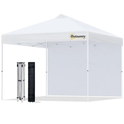 Wheel in the party with Outsunny. Our tents for parties can be set up, torn down, and moved fast. Supply shade for all sorts of outdoor events like weddings, graduations, barbeques, chili cookouts, farmers markets, fairs, and concerts. The support stakes keep it firmly planted in the wind. The included sidewall blocks the oncoming sun. When it’s time to move your pop-up gazebo out of your event space you can wheel it away with its included carrying bag. Easy folding set-up just got even easier.