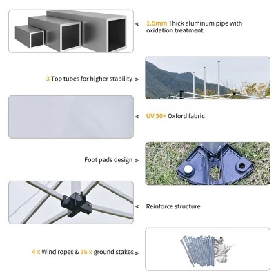 - UPGRADED FRAME: The upgraded pop up canopy from Outsunny uses an all-aluminum frame, which is lightweight and will not rust. Compared with the market, you can find that our pipe diameter and pipe thickness are very prominent. The pipe thickness is 1.5mm (normally 0.5-0.6mm). The pipe diameter is 40mm, others are 30mm.
