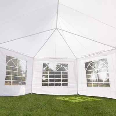 - EASILY CUSTOMIZABLE: The two solid pull-back doors and eight window walls of the party tent attach with hook and loop fasteners for quick assembly. Customize the look and feel of your gazebo canopy tent by adding or removing the walls as needed.