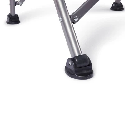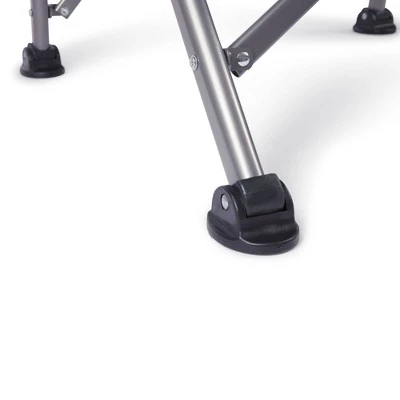- RUGGED BEACH CHAIR – This sturdy steel frame folding lawn chair features hinged feet for stability on uneven terrain, durable polyester canvas construction, and a zippered security pocket behind the headrest