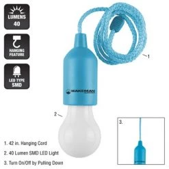 Leisure Sports Portable Pull Cord Outdoor/Indoor Hanging LED Bulb Lantern – Black