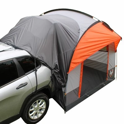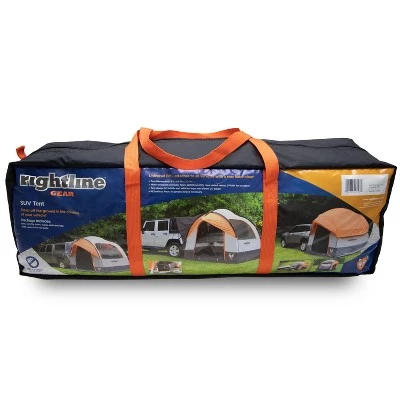 The Rightline Gear SUV Tent lets you sleep off the ground in the comfort of your own vehicle. The tent connects to the back of any size SUV, minivan, wagon, or pick-up truck with cap. Large size no-see-um mesh windows and doors have storm covers that can be closed for privacy. The SUV Tent features (2) gear pockets, a lantern hanging hook, and glow-in-the-dark zipper pulls. The vehicle sleeve easily disconnects, allowing you to leave the tent behind as you go about the day’s adventures.