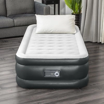 - Twin-sized inflatable air mattress fits 1 adult