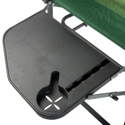 The Sierra Designs Compact Folding Directors Chair is your go-everywhere, sit-anywhere essential. Sprawl out with the oversized design and kick it in comfort with padded arm rests and back and breathable mesh material. When you’re ready to head out, the compact design and carry handle make for easy transport. No need to leave any of your must haves behind with the side table that has a cup holder and media pocket.