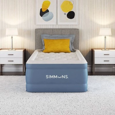Go to sleep in a wink on the Simmons® Rest Aire® 17″ Air Mattress Guest bed. Designed for undisturbed sleep, the flocked top with coil design mimics the feel of a traditional mattress. The Rest Aire® features an inset pump with a safety auto shut-off that inflates and deflates in just over 2 minutes. Stay cozy all night with the soft, breathable cover that reduces heat buildup and prevents sheets from slipping and shifting. An innovative no sag edge support prevents sagging and maintains stability that will allow you to get out of bed with ease. Made with extra thick puncture-resistant vinyl with a 100% leak free guarantee! Sleep Fresh antimicrobial treatment keeps mattress fresh, clean, and odor free. Supports up to 650 lbs. 3 Year Warranty.