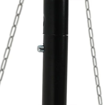 Cook over an open fire at ease while camping with this steel-legged tripod stand and grate grilling set. Minimal assembly, simply snap the three 2pc legs together and connect to the top piece. Hook the top of the chain mechanism to the top hook and place the grate at the end of the chains. For safety, please do not assemble this over an active fire pit. Distance from leg to leg is approximately 34″; grill is adjustable and can hang about 14″ to 23″ off the ground. Cooking grate can hold up to 20 lbs, making it possible to cook a larger meal. !!! ——————– For California Residents ——————– !!! WARNING: This product can expose you to chemicals including Benzene, which is known to the state of California to cause cancer and birth defects or other reproductive harm. For more information go to www.P65Warnings.ca.gov