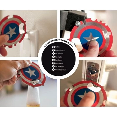 - SUPER TOOL: Save the day with this multi tool that looks like Captain America’s shield!