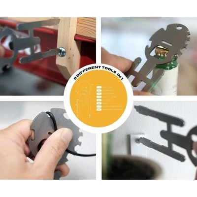 - 8 HANDY GADGETS: Cord cutter, hex wrenches, bottle opener, butterfly wrench, can opener, ruler, flat head screwdriver, and Phillips head screwdriver